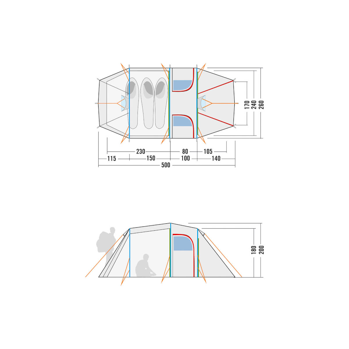 Telk, sobib 3-4 inimesele, eeskoda, vetthülgav materjal, tuule ja veekindel.